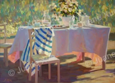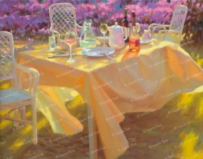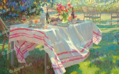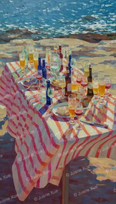 Juane Xue zelf typeert deze doeken vanwege het unieke onderwerp als “bewegende stillevens”.